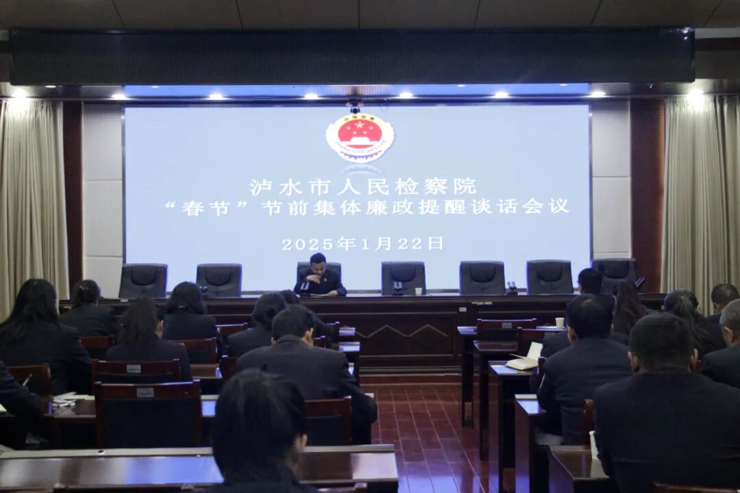 为深入贯彻落实中央八项规定及其实施细则精神,营造风清气正的节日氛围。近日,泸水市人民检察院召开“春节”节前集体廉政提醒谈话会议,受院党组书记、检察长邬中明委托,党组副书记、副检察长胡润坪主持会议并对全体检察干警进行集体廉政提醒。