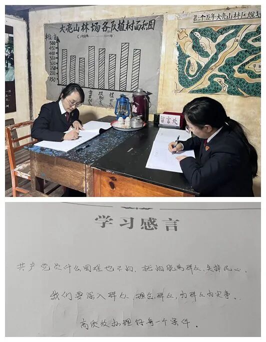 在老场部教学点,在“以杨善洲为镜子”的牌匾下,支部书记要求“全体党员要以杨善洲同志的先进事迹为镜子,查找自身的差距,补足差距与不足”。在林场会议室里,青年干警们写下学习感言,结合检察工作实际,畅谈学习感悟。