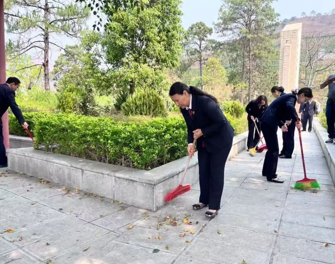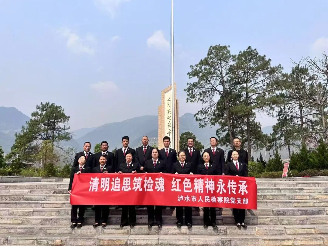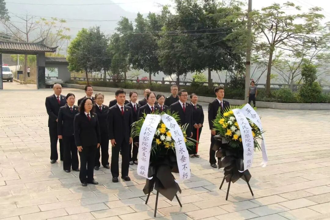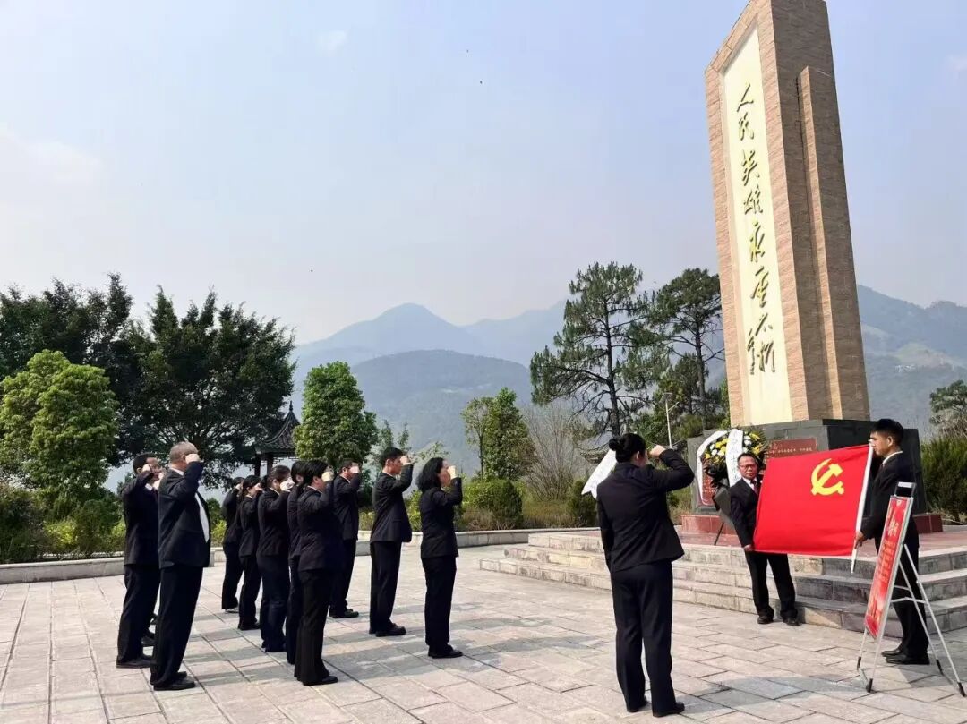 “我志愿加入中国共产党……”在纪念碑前,干警们面对党旗重温入党誓词,铿锵有力的誓言在陵园上空回荡。支部副书记王晓娟领誓,要求全体党员要以先烈为镜,把对党的忠诚刻进灵魂,让勇于担当融入血脉,用实际行动践行检察人的初心使命。