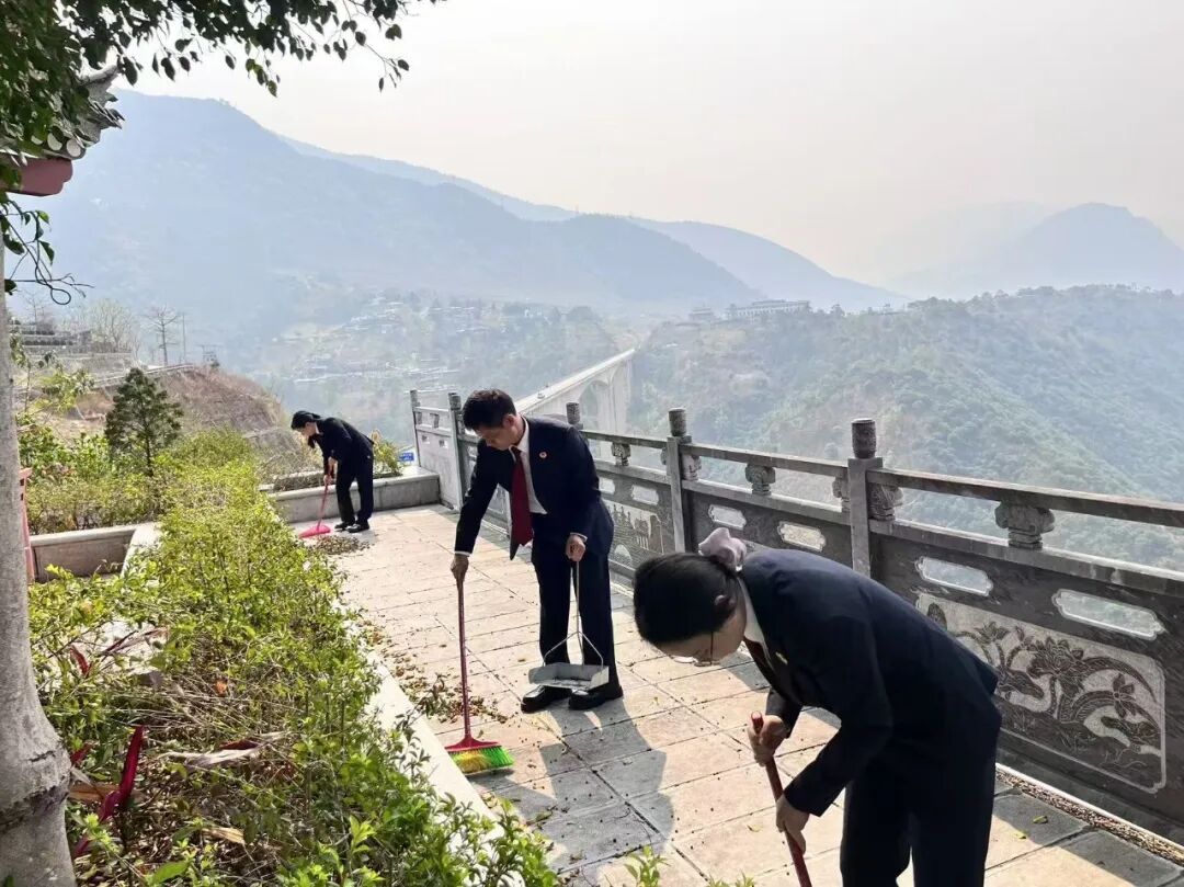 随后,干警们怀着崇敬之情绕行纪念碑一周,细细瞻仰英烈墙。在“人民英雄永垂不朽”八个鎏金大字下,干警们驻足凝视,指尖轻触冰冷的墓碑,仿佛触摸到那段波澜壮阔的历史。阳光穿过松针,在大理石碑上投下斑驳光影,干警们自发清理陵园杂草落叶、轻轻拂去墓碑上的尘埃、仔细研读英烈生平。将零散的菊花重新摆成整齐的方阵,让哀思在静默中凝聚成前行的力量。