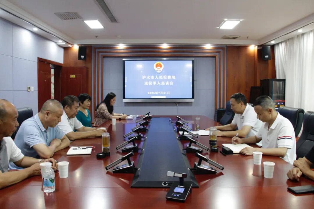 在建军98周年即将到来之际,7 月 31 日下午,泸水市人民检察院组织召开退役军人座谈会,邀请院内退役军人干警欢聚一堂,共庆建军佳节并送上慰问金。