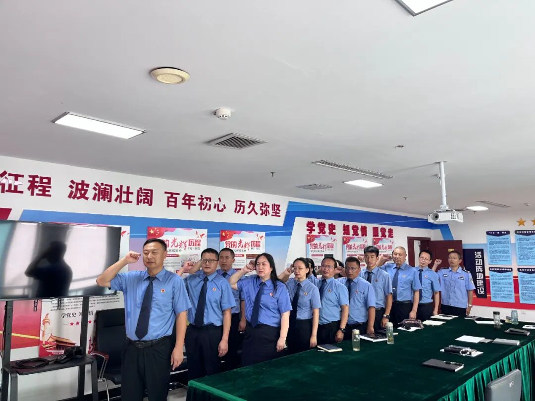 “我志愿加入中国共产党……随时准备为党和人民牺牲一切,永不叛党。”活动中,全体党员在院党组书记邬中明带领下,面向党旗,举起右拳,庄严重温入党誓词。铿锵有力的誓言回荡在现场,不仅彰显了新时代共产党员对党的无限忠诚与对使命的庄严承诺,更再次点燃了每一位党员内心深处的使命感与责任感,激励大家以更加奋发有为的精神状态,积极投身于全面深化改革和检察事业高质量发展的伟大实践中去。
