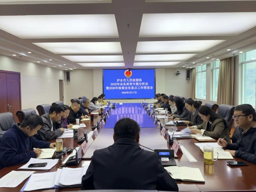 为深入贯彻落实全国、全省、全州检察长会议精神,全面落实“高质效办好每一个案件”的基本价值追求,3月17日,泸水市人民检察院召开2025年度业务质效专题分析会暨2026年度检察业务重点工作推进会。党组书记、检察长邬中明主持会议,院领导班子成员、各部门负责人及全体员额检察官参加会议。