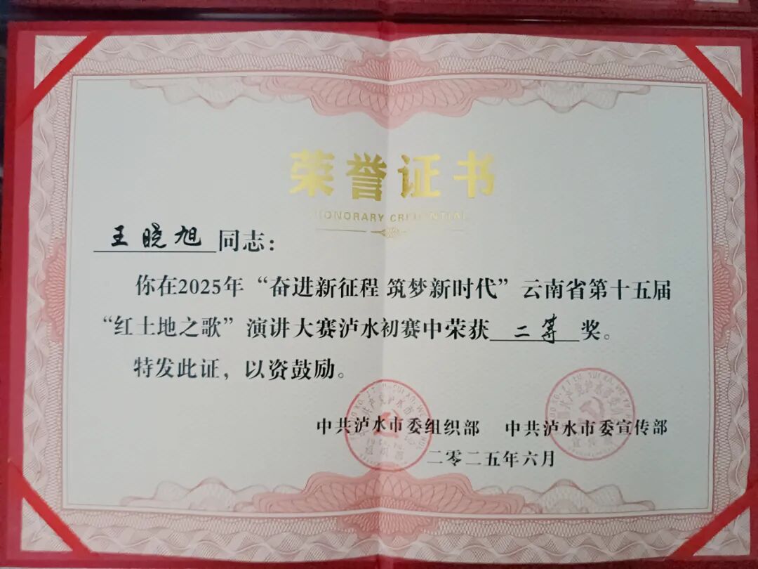 为深入学习贯彻习近平文化思想,大力培育和践行社会主义核心价值观,深化爱国主义、集体主义、社会主义教育。6月10日,由市委宣传部、市委组织部主办的云南省第十五届“红土地之歌”演讲初赛热烈开展,我院干警王晓旭代表参赛,并做了题为《以法治之光,践检察誓言》的原创演讲,充分展现了泸水检察新青年的亮丽风采。