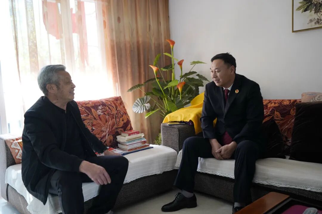 日月开新元,天地又一春。新春佳节来临之际,2月1至2日,我院党组书记、检察长邬中明和班子成员们分别带队走访慰问退休老干部、白水河村“三类人员”、驻村工作队员,送去组织的关怀和温暖,并送上真挚的新春祝福。 邬中明检察长与老干部们亲切交谈,详细了解他们的生活和身体状况,感谢他们对泸水检察作出的贡献,同时,叮嘱他们要保重身体,保持积极健康的心态,继续为泸水检察工作提供宝贵的意见和建议。 老干部们对院党组一直以来的关心和关怀表示感谢,为泸水检察事业发展取得的成就感到由衷高兴,同时表示会继续发挥余热,为泸水检察事业发展贡献力量。