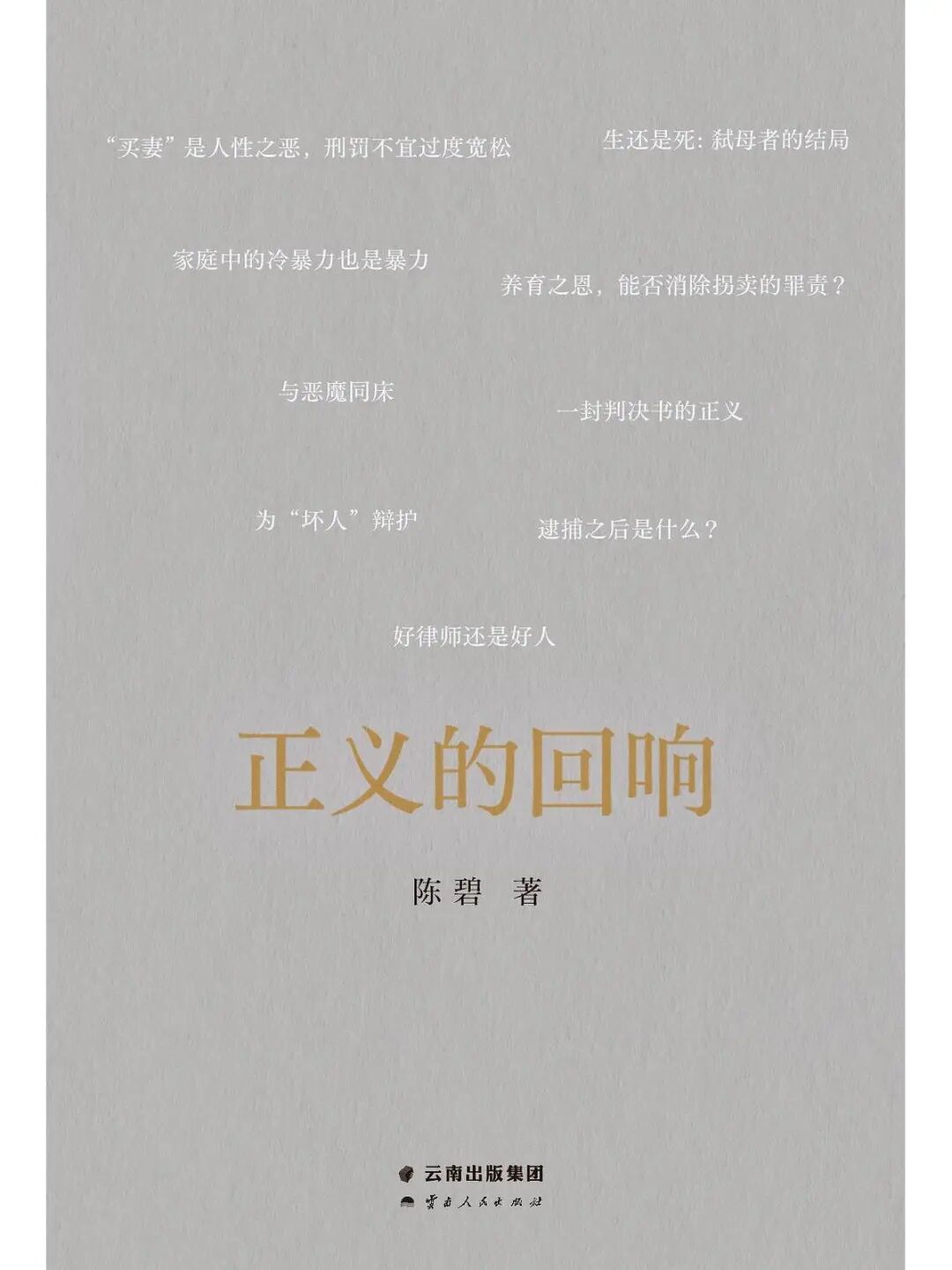 《正义的回响》是一本法律随笔集,作者陈碧用通俗易懂的语言,将复杂而敏感的热点案件一一解析,让我们从法律的角度去理解和评判社会现象。《正义的回响》还以监督者的身份,提醒着我们司法工作人员:法律不应该是冷冰冰的,司法办案既要有力度,更要有温度。如果你也曾经被一些社会热点案件,引起过内心巨大震动,试图向法律诉求正义,那我推荐你阅读《正义的回响》,因为我觉得,你那份珍贵的良知和理性,在这本书里得到了书写和证明。