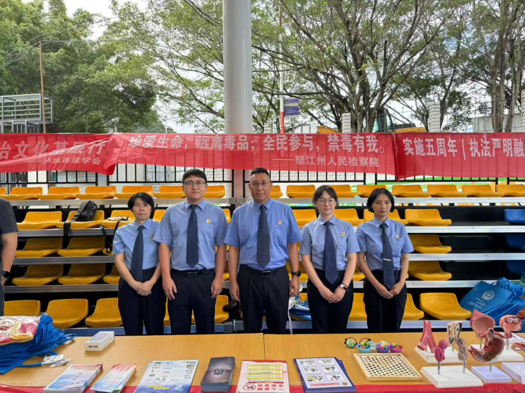 为深入贯彻习近平总书记关于禁毒工作的重要指示批示精神,全面落实禁毒委工作要求,切实做好禁毒宣传工作。在6月26日第38个国际禁毒日,泸水市人民检察院参加州市直机关单位在泸水市民族体育场内开展的“6.26”国际禁毒日宣传活动。